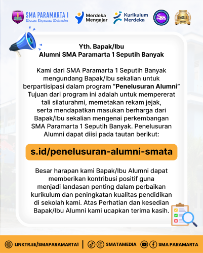 Ucapan Terima Kasih yang sebesar besarkan kepada seluruh tim bola voli SMATA yang telah berjuang membawa nama baik sekolah, tentunya ini menjadi sebuah prestasi untuk SMA Paramarta 1 Seputih Banyak di bidang olahraga. Harapanya bidang bidang olahraga lainnya bisa memberikan prestasi yang gemilang untuk SMA Paramarta.